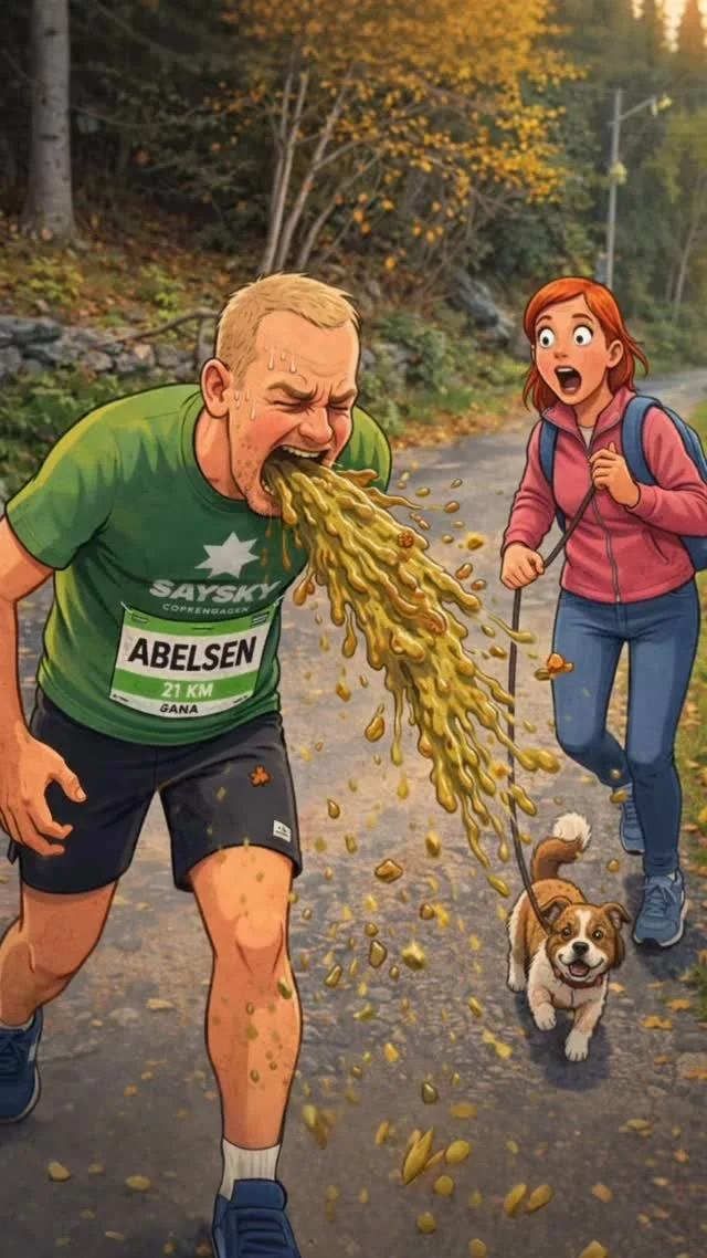 Thomas fra @veientilstartstreken tar seg en spontan halvmaraton i @maratonkarusellen og merker fort at noe er galt🤮 Hør episoden der du hører Veien til Startstreken 😎